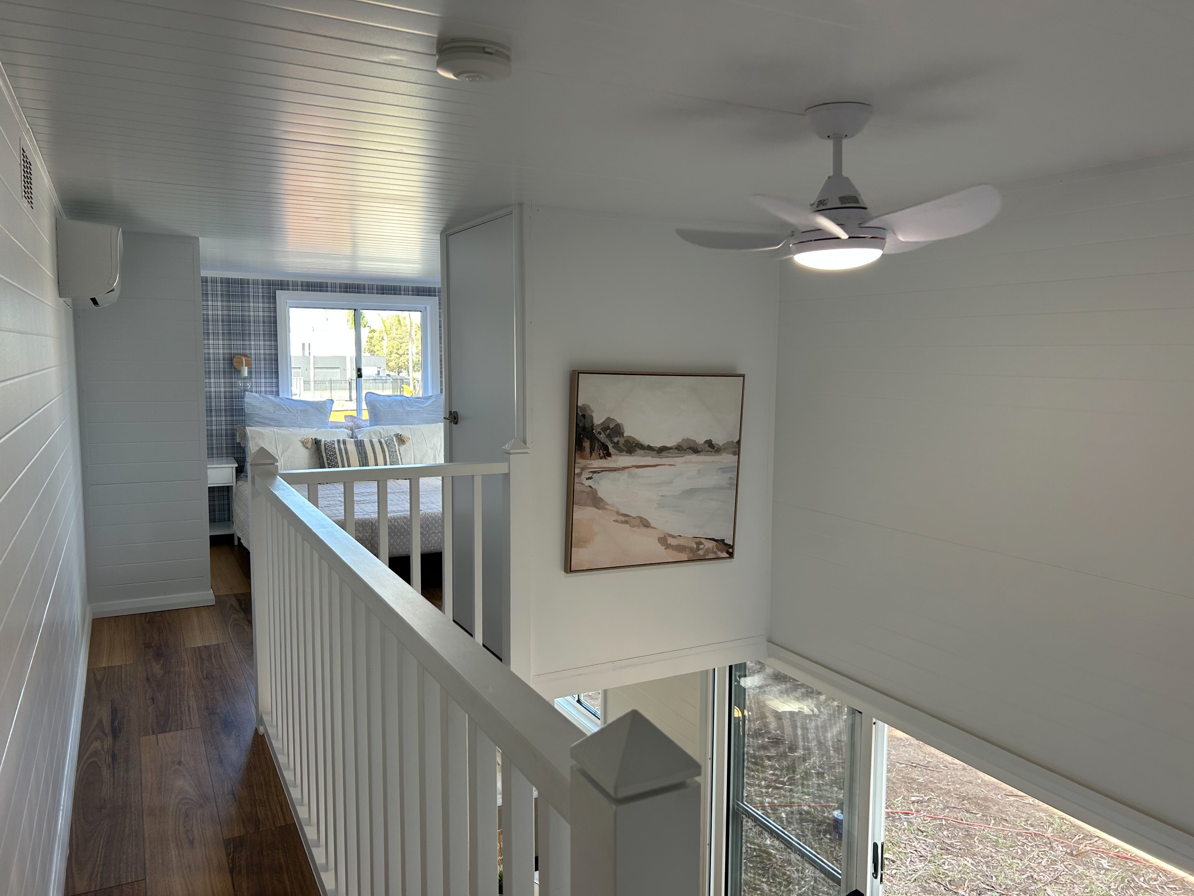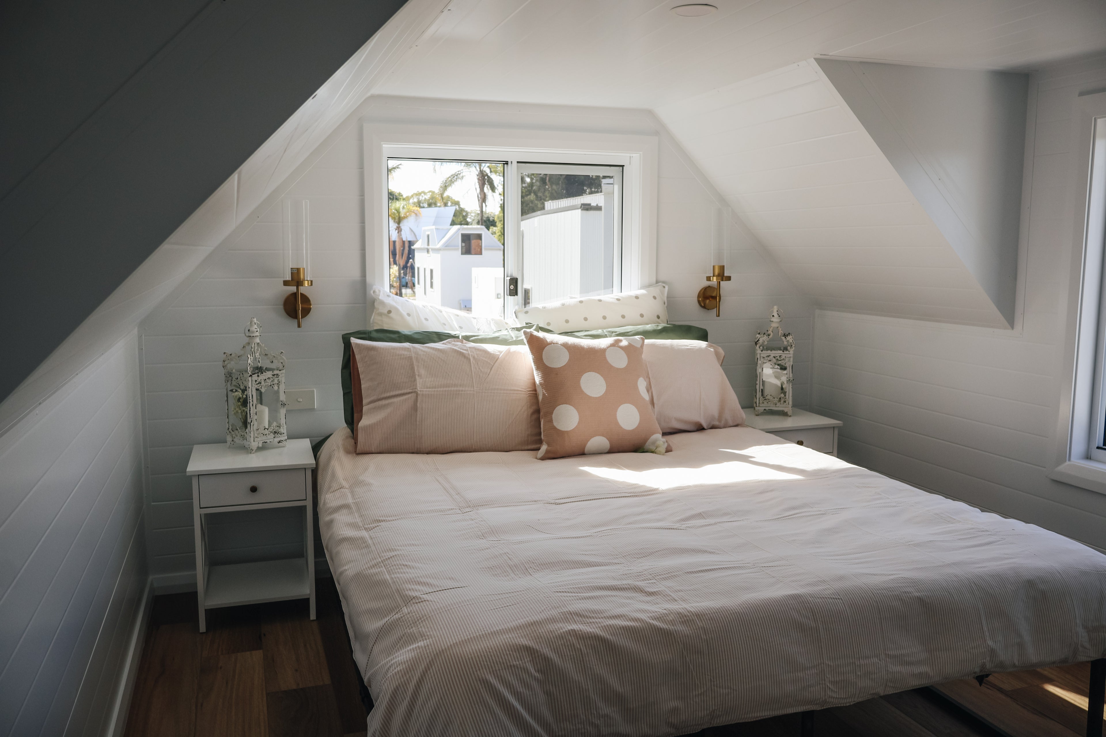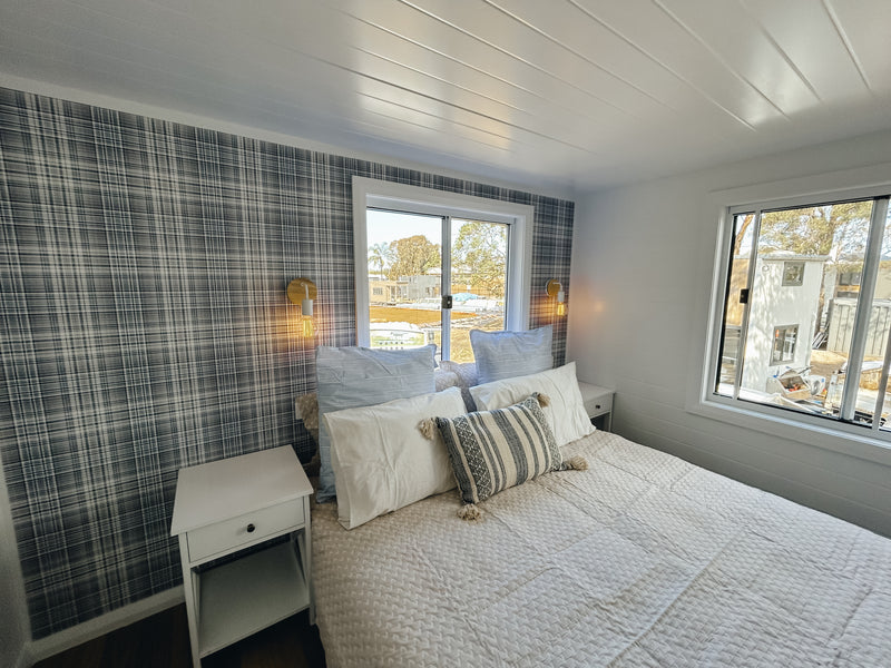 The two lofts with standing height ceilings provide the ultimate sense of luxury in this tiny home so you don't have to crawl into bed!