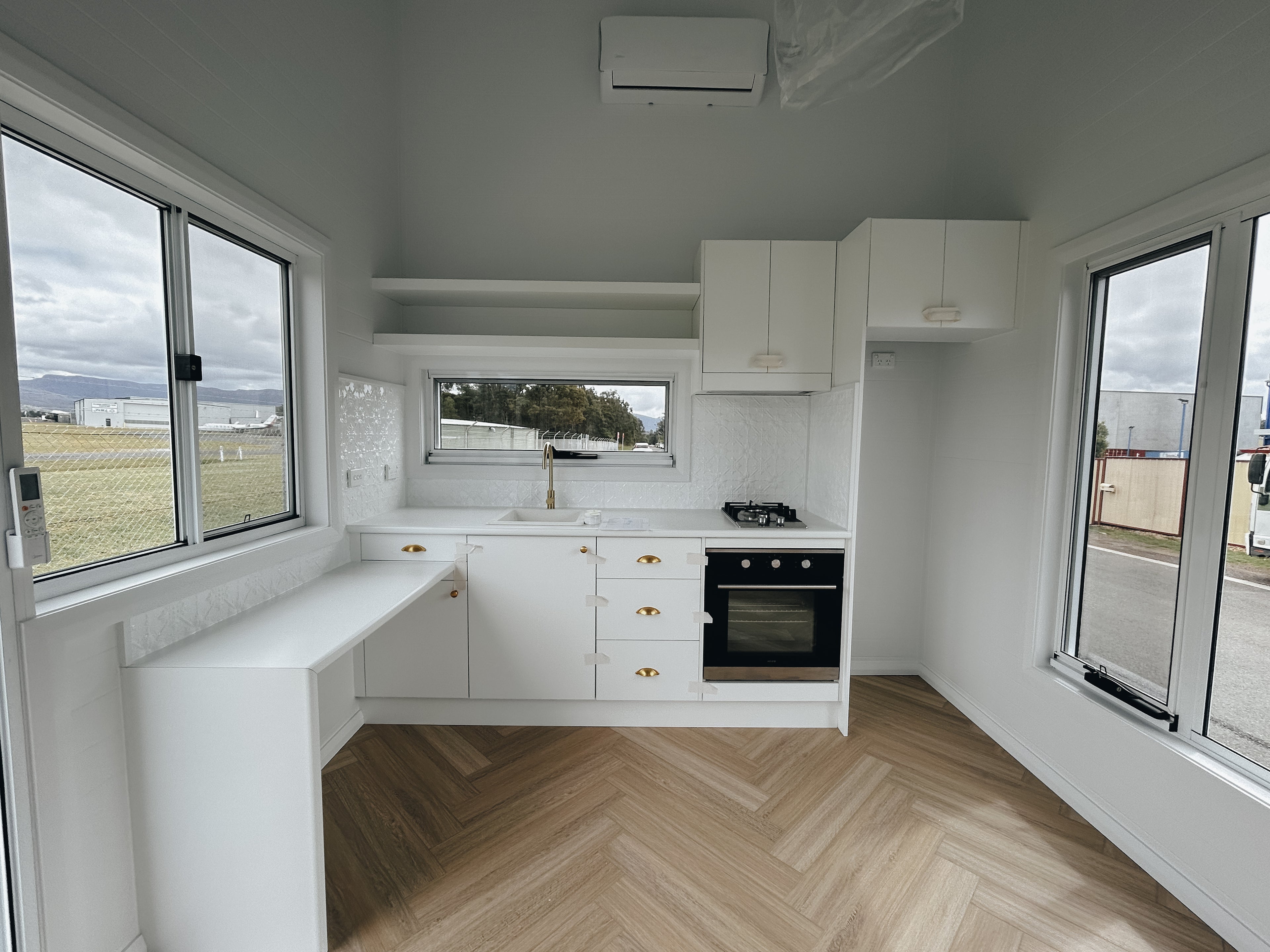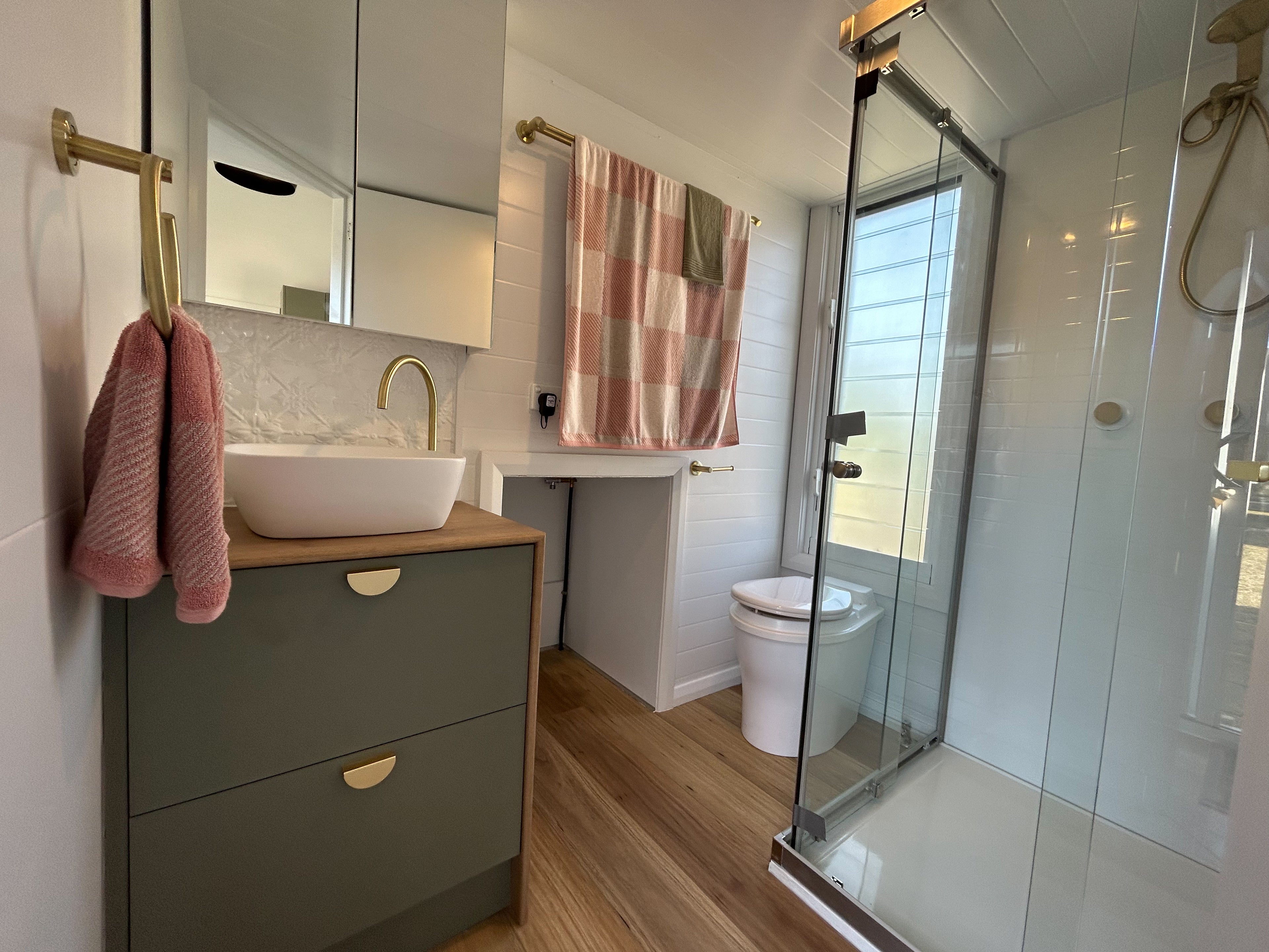 The full kitchen is very generous with storage and the spacious bathroom has room for your laundry appliances.